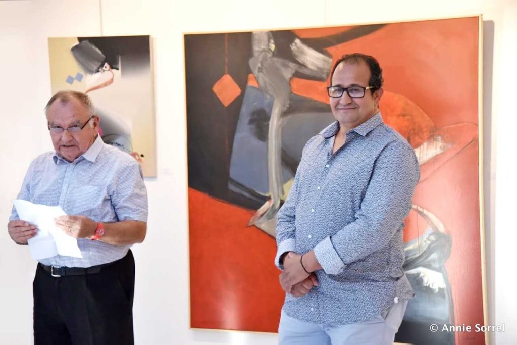 Ghouar est venu progressivement à la peinture abstraite ; il est passé par un semi figuratif à coloration ethnologique où il présente des femmes et des hommes chaouis et touaregs. Il fait des clins d’œil à Issiakhem dans son travail sur les figures féminines et masculines. L’auteur de La Veuve a, lui aussi, utilisé le motif vernaculaire, non pas en tant que référent essentiel de l’œuvre mais en tant qu’indication culturelle permettant d’identifier l’espace d’appartenance du tableau et de le situer géographiquement comme nord-africain. Cette peinture va rapidement évoluer pour devenir semi figurative, en intégrant des motifs berbères et des sortes de lettres tifinagh. Par la suite ce sont des formes libres travaillées par des motifs berbères qui vont dominer, mais l’insatisfaction de l’artiste semble attisée par une inquiétude toute aussi forte et une volonté de trouver son style et son sujet hors des sentiers battus de l’art algérien et de ses icones et symboles. Il abandonnera les motifs géométriques et les références culturelles et identitaires, pour des formes libres qui s’élancent dans l’espace comme des cordes, des tuyaux et des nœuds. Après avoir longtemps été marqué par l’empreinte hégémonique du signe, Ghouar a fait table rase de ce qui ne lui appartient pas en propre mais à toute une communauté. Tout en restant attaché à quelques motifs essentiels de l’art de ses ancêtres, il ne fait plus du signe une tarte à la crème. Il n’y recourt qu’en cas d’extrême urgence, de nécessité absolue. Les lettres arabes, tifinagh, triangles, losanges et carrés magiques de la cosmogonie berbère sont donc encore présents dans son travail et s’intègrent à un langage plastique plus vaste, sans lequel ils n’auraient plus de sens en peinture. Ces formes ne permettent pas de leur donner une nature et une texture mais il peut s’agir de machineries et de moteurs, comme d’ossements, de racines et de branches. On peut encore y percevoir des lettres arabes déstructurées et déformées, ou plutôt y identifier le rythme cursif de la calligraphie arabe nouskhi ou rouki, dont le mouvement est très proche de la nature et de ses rythmes. C’est ce mouvement issu de la calligraphie arabe qui donne son caractère lyrique à cette peinture, qui est travaillée par des tensions puissantes, liées à quelque événement fort que l’artiste a vécu. Cependant, elle n’est pas dramatique et son lyrisme très contenu, notamment par une couleur chaude et douce. Les noirs servent souvent comme fond pour ces formes qui s’élancent dans tel ou tel sens, comme des racines ou des tubes et conduits d’une cité abandonnée. Cette peinture est en train d’asseoir une identité et un sujet originaux ; et c’est avec le temps qu’elle pourra définir plus clairement son objet, pour le moment encore voilé par des préoccupations formelles. Peintre exigent et conscient de sa maîtrise technique, Ghouar préfère s’impliquer dans le courant mondial de l’art plutôt que de suivre la tendance locale fondée sur la répétition et qui montre ses limites car bloquée par la domination aveuglante de l’articulation culturelle et politique. Il ne se s’échine pas à mettre en valeur l’élément culturel national, sachant que celui-ci ne peut être avantageux que s’il est exprimé dans un langage personnel. Car compter sur le seul répertoire culturel local, sans le revisiter – «recharner», pour utiliser le mot de Jacques Berque à propos de Khadda – ne mène pas loin. Il ne cherche pas, non plus à s’inscrire dans le mouvement passager, facile et hégémonique de ce qu’on appelle art contemporain.